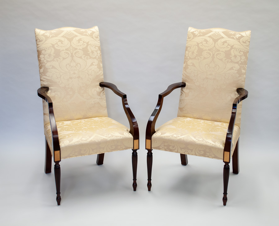 The custom made chairs shown below are either designed by Cherry Brook Woodworks, exact reproductions copied from period chairs, or replicated from a photograph of the original.