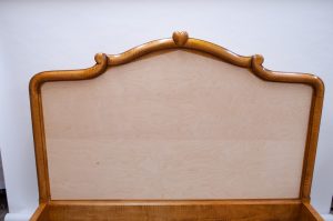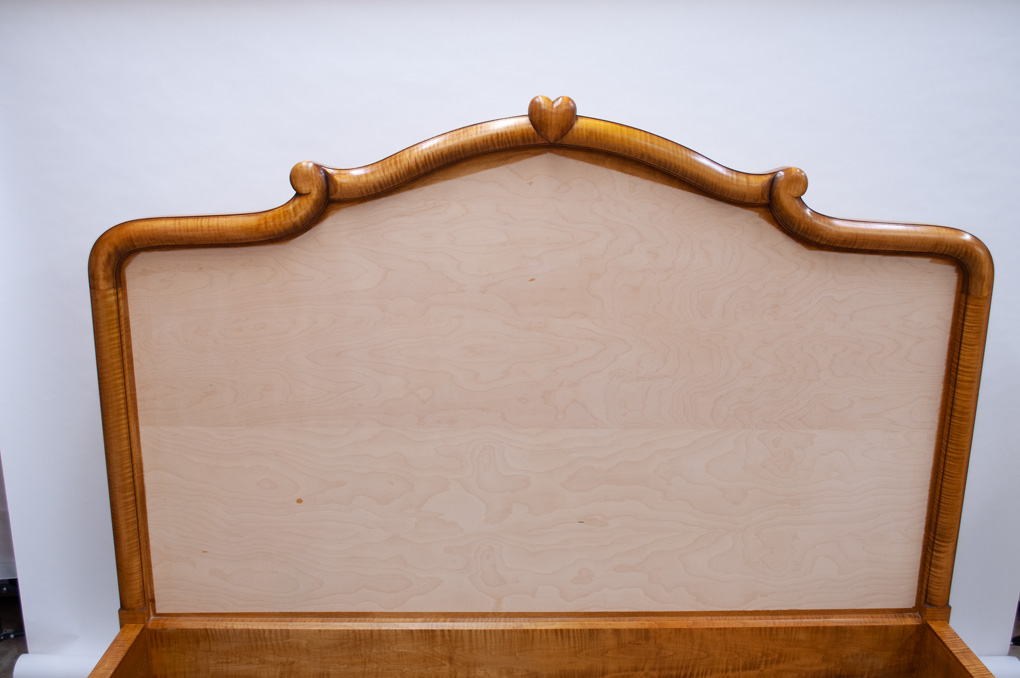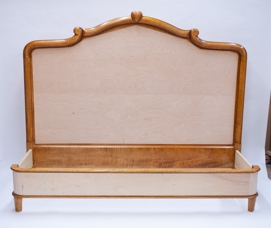 This is a custom tiger maple bed designed to wrap around an adjustable sleep number bed. The headboard and rails were going to be upholstered.
